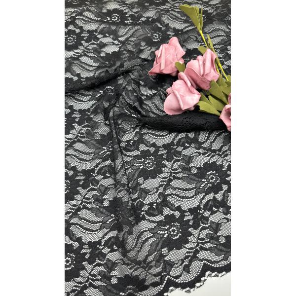 55 Inch Nylon Spandex Width Black Color Elegant Design Stretch Floral Corded Elastic Lace Fabric With Scallop For Fashion Women Clothing Images |